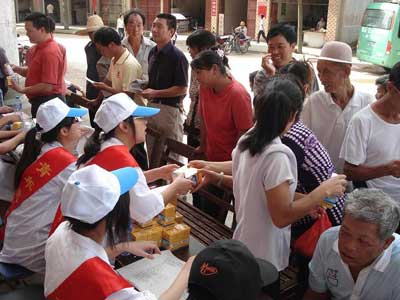 為了貫徹和實施團中央有關(guān)大學(xué)生“三下鄉(xiāng)”活動的精神,我系于7月4日至7月6日前往福州市閩侯縣洋里鄉(xiāng)開展以“真情送服務(wù),實踐促成長”為主題的“三下鄉(xiāng)”活動。本次活動得到閩侯縣團委、洋里鄉(xiāng)政府的支持和指導(dǎo),并得到福州海王福藥制藥有限公司、福建省東南醫(yī)藥有限公司友情贊助。“三下鄉(xiāng)”服務(wù)隊由何烜、唐小巒和鄭瑋老師和10名團干部組成。本次“三下鄉(xiāng)”活動閩侯縣電視臺全程跟蹤報道。